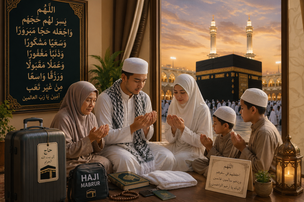 Ya Allah, mudahkanlah bagi kami untuk mengunjungi dua Tanah Haram dan berziarah ke makam Nabi-Mu Muhammad ﷺ. Wahai Tuhanku, mudahkanlah dan jangan Engkau persulit. Wahai Tuhanku, sempurnakanlah (urusan ini) dengan kebaikan.